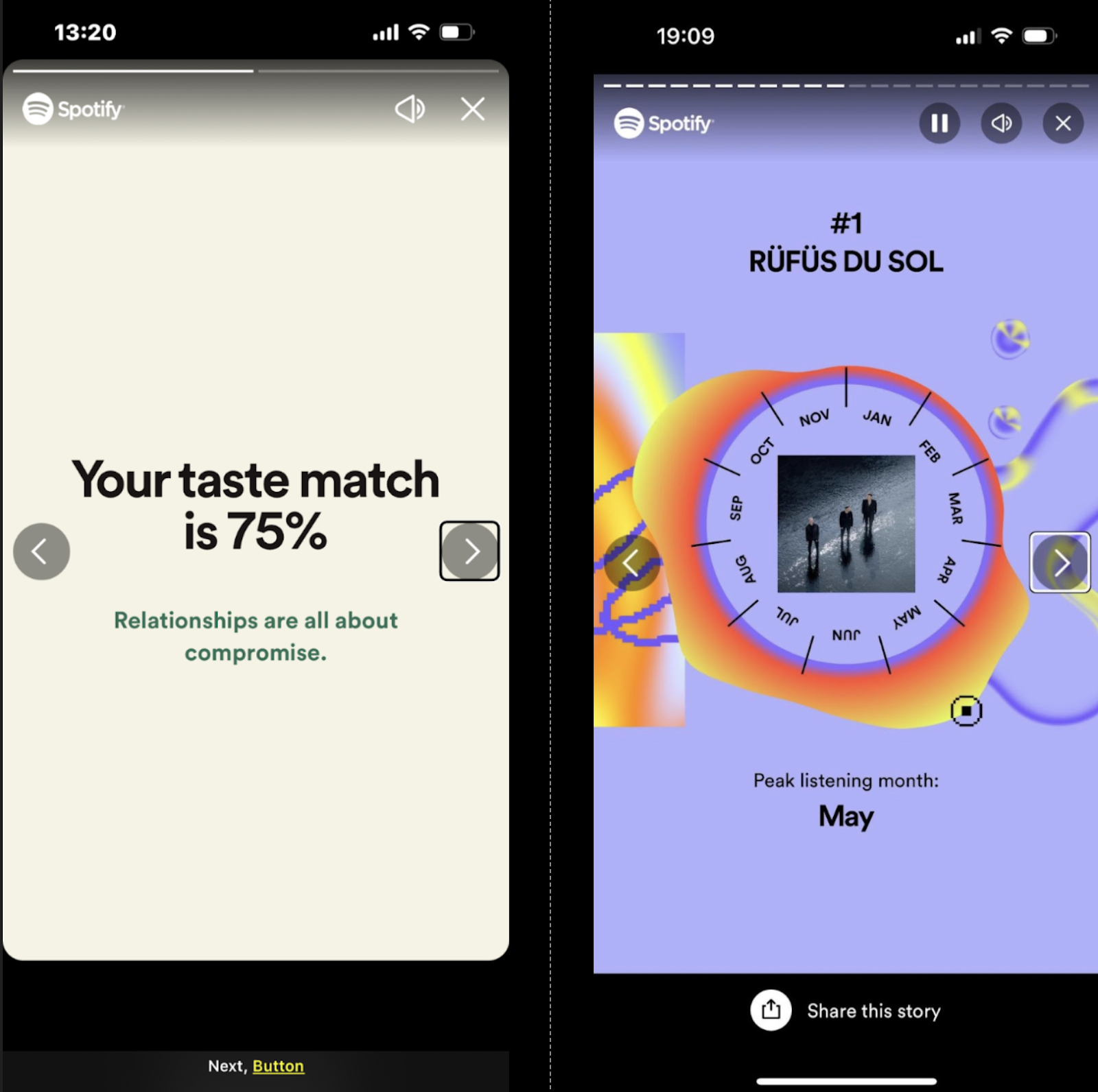 Story controls in 2022 Wrapped vs 2023 Wrapped
